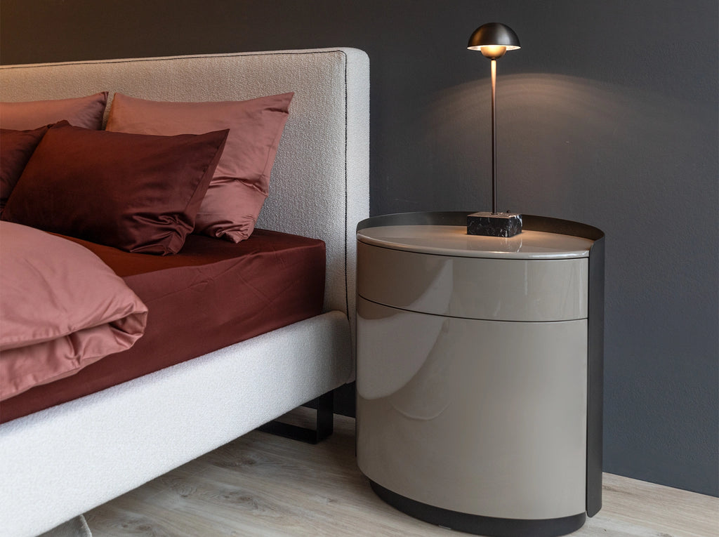 CHIARA - ein modernes Premium-Polsterbett, Rahmen- und Kopfteilkonstruktion aus Massivholz. Rahmen und Kopfteil gepolstert mit festem Bezug mit feinsten Stoffen aus der Christine Kröncke Kollektionen.
